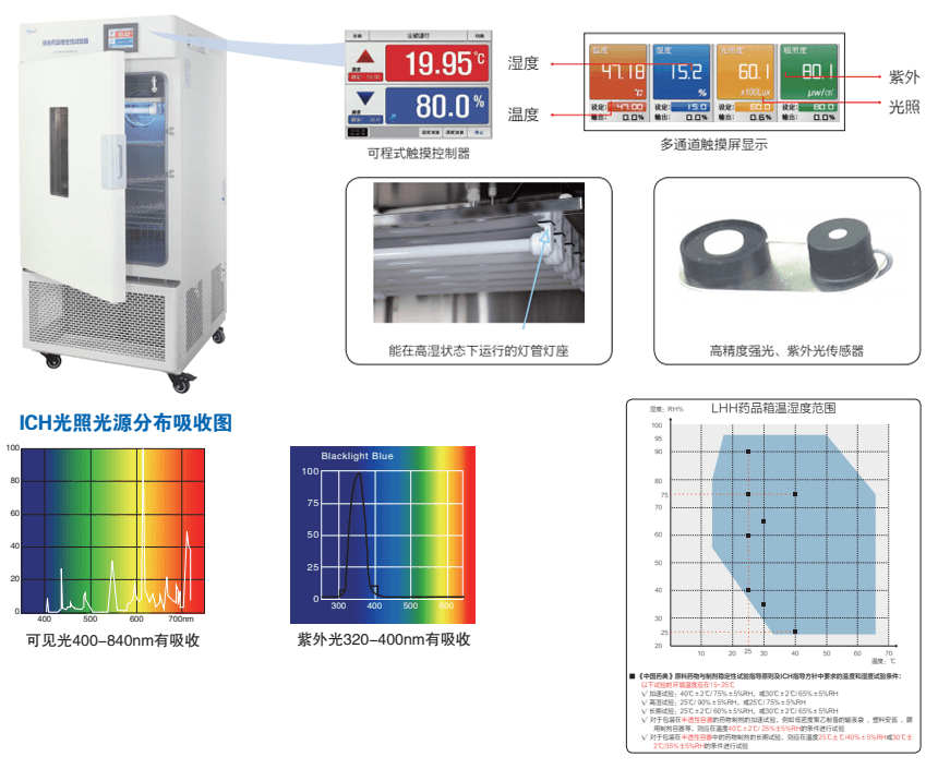 控制,是制藥和化妝品企業(yè)進(jìn)行GMP認(rèn)證的必備設(shè)備。符合ICH指導(dǎo)原則中光穩(wěn)定性測試條件。